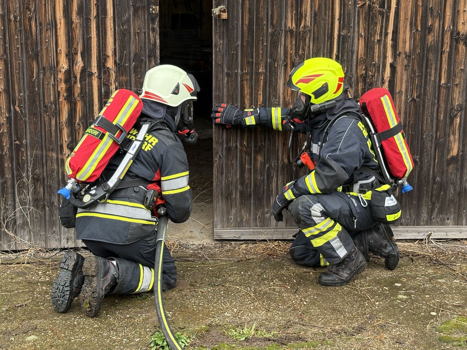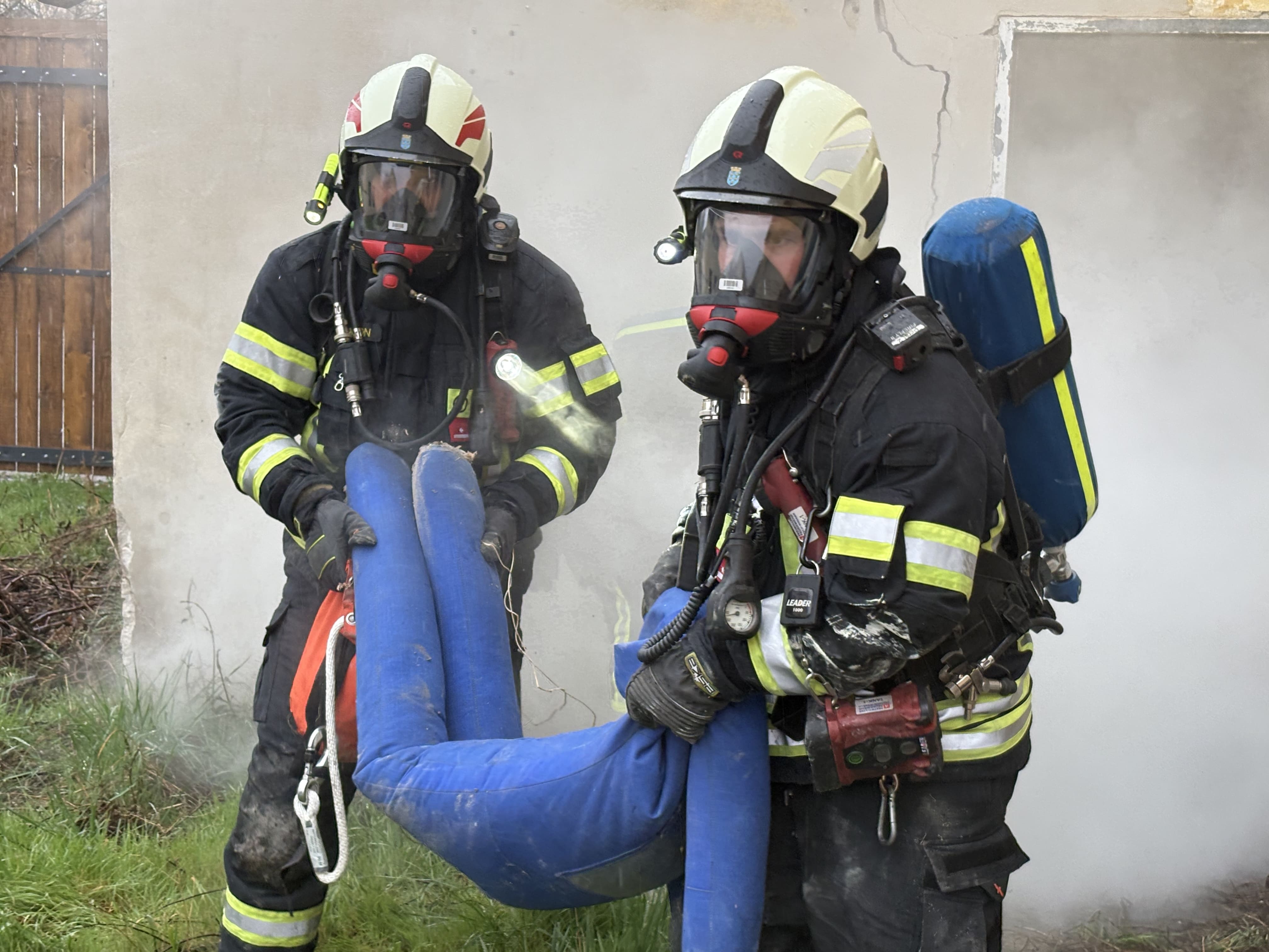 Als Übungsszenario diente ein Vollbrand eines Wohngebäudes mit angeschlossenem Lagerbereich. Die Einsatzkräfte standen vor einer komplexen Lage mit mehreren parallelen Aufgaben: Die Rettung von zehn vermissten Personen aus stark verrauchten Bereichen, das Wegziehen eines LKWs sowie die intensive Brandbekämpfung im Innen- und Außenangriff.