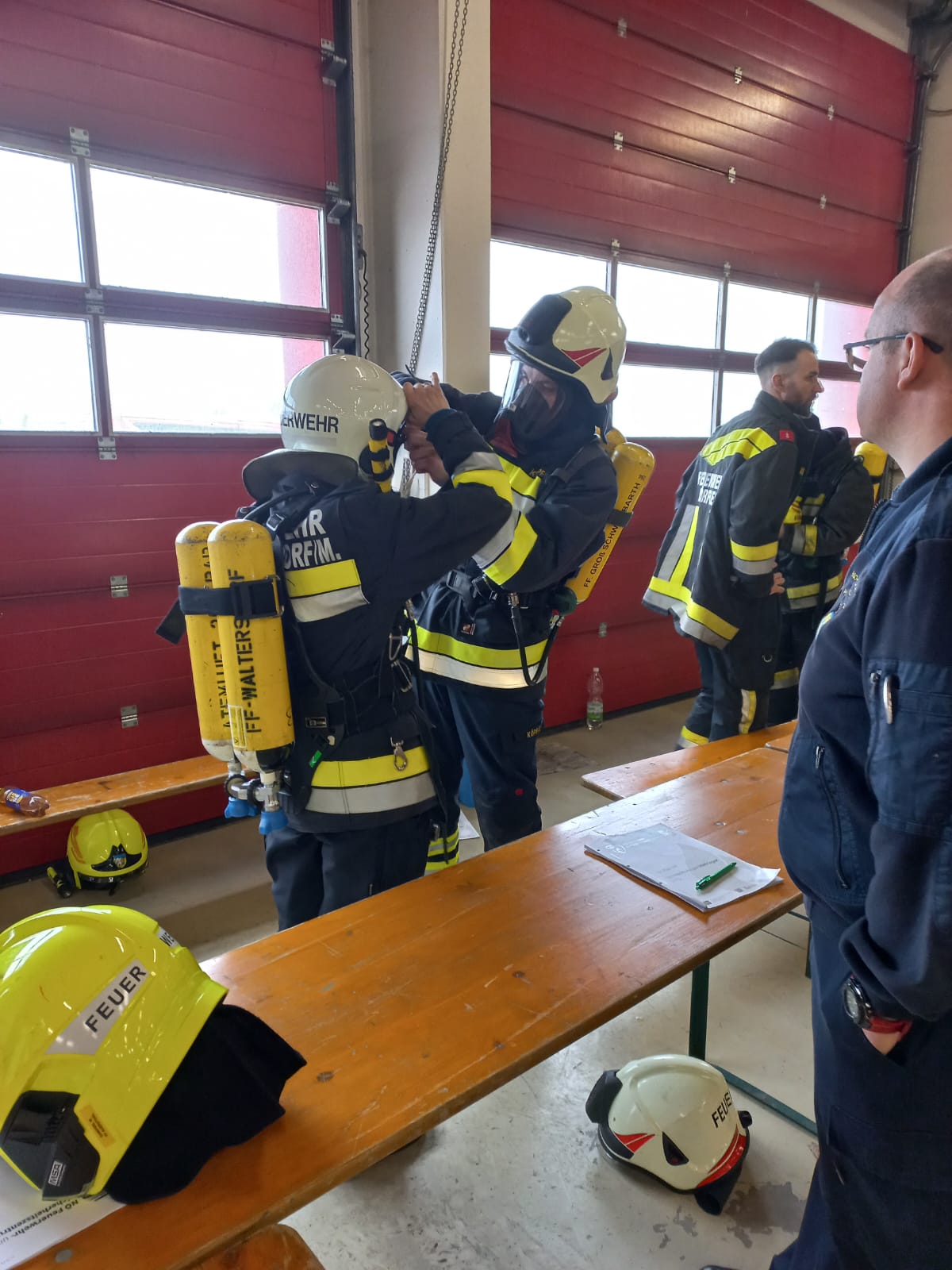 Als Einführung wurden den Teilnehmern an den ersten beiden Ausbildungstage im Lehrsaal die Aufgaben und Grundsätze für den Atemschutzeinsatz sowie die Gerätearten die in einem Atemschutzeinsatz zur Verwendung kommen können näher gebracht.